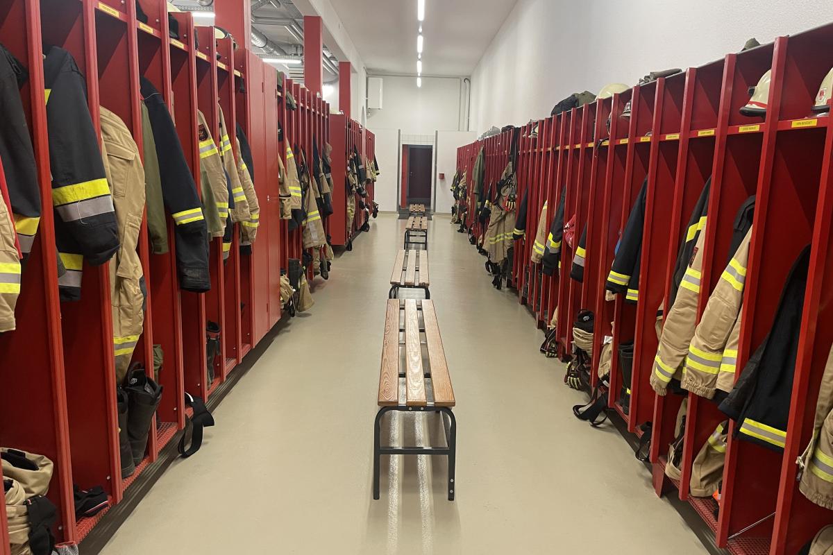 Die Spinde aller Mitglieder befinden sich in einem eigenen Umkleidebereich im Feuerwehrhaus. Jeder Feuerwehrkamerad und jede Feuerwehrkameradin verfügt über einen persönlichen Schrank zur Aufbewahrung der Einsatzbekleidung und Schutzausrüstung. Die klare Anordnung sorgt für Ordnung und ermöglicht ein rasches Umkleiden im Einsatzfall.