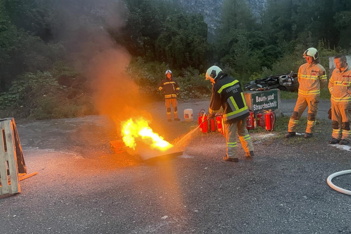 An der ersten Station stand die Handhabung der ersten Löschhilfe im Fokus. Dabei konnten die verschiedenen Arten von Feuerlöschern ausprobiert und praktisch getestet werden. Die zweite Station diente der Einschulung auf unsere neue Sprinkleranlage zur Waldbrandbekämpfung, erstmals auch für den 2. Zug. Dabei wurde die gesamte Anlage inklusive des umfangreichen Zubehörs in Betrieb genommen und praxisnah vorgeführt.