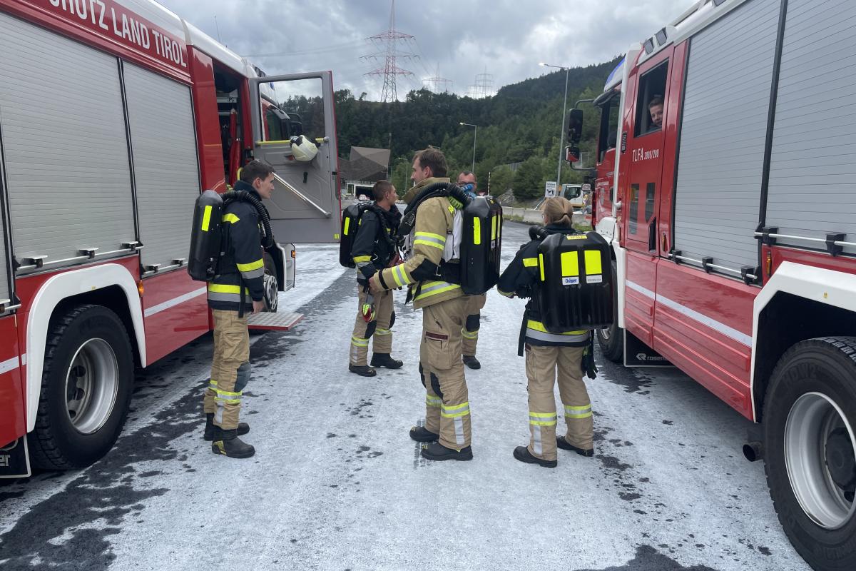 Laut erster Meldung an die Leitstelle Tirol war unklar, ob es sich um einen Brand oder lediglich um Rauchentwicklung bei einem Pkw im Tunnel handelte. Aufgrund dieser unklaren Lage rüstete sich unsere RLF-T-Mannschaft bereits während der Anfahrt mit unseren Sauerstoffschutzgeräten aus.