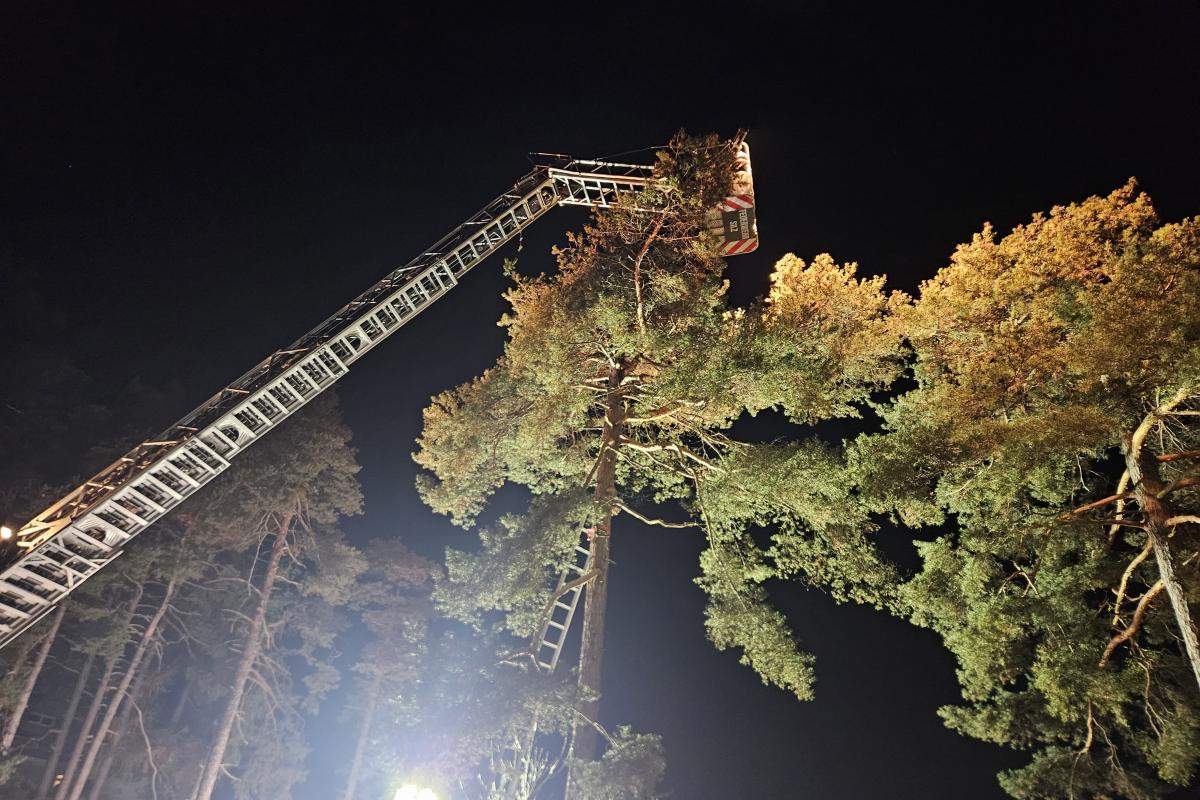 Eine Katze war bereits seit mehreren Stunden abgängig und wurde schließlich von den Besitzern in einer Baumkrone entdeckt. Daraufhin verständigten sie die Feuerwehr Sautens. Da sich die Katze in einer Höhe befand, in der eine Rettung mittels Steckleiter nicht möglich war, wurde vom Einsatzleiter der Feuerwehr Sautens die Drehleiter der Feuerwehr Silz nachalarmiert.