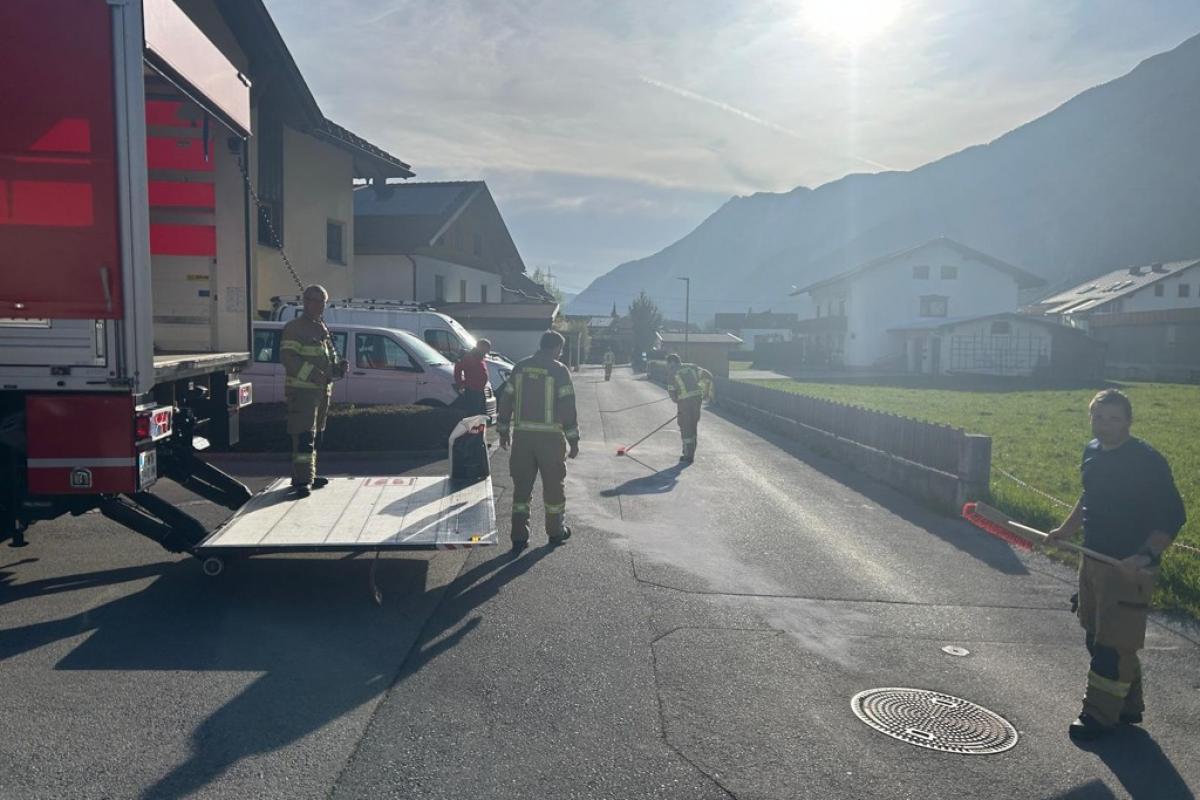 Ein technischer Defekt an einem Fahrzeug führte im Bereich des Silleswegs zum Austritt von Betriebsmitteln. Die Feuerwehr Silz rückte aus und band die Ölspur.