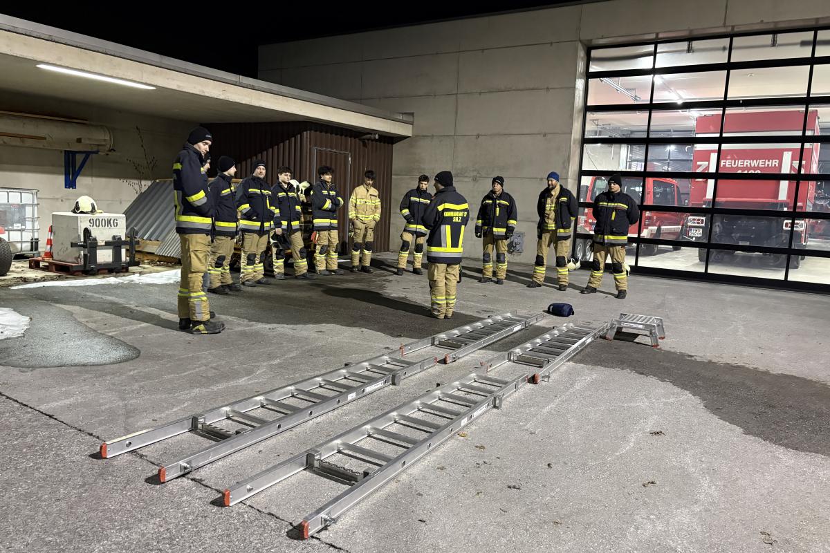 Hier wurde die Handhabung der Steckleiter wiederholt. Dies umfasste sowohl den ordnungsgemäßen Aufbau als auch das sichere Besteigen der Steckleiter.