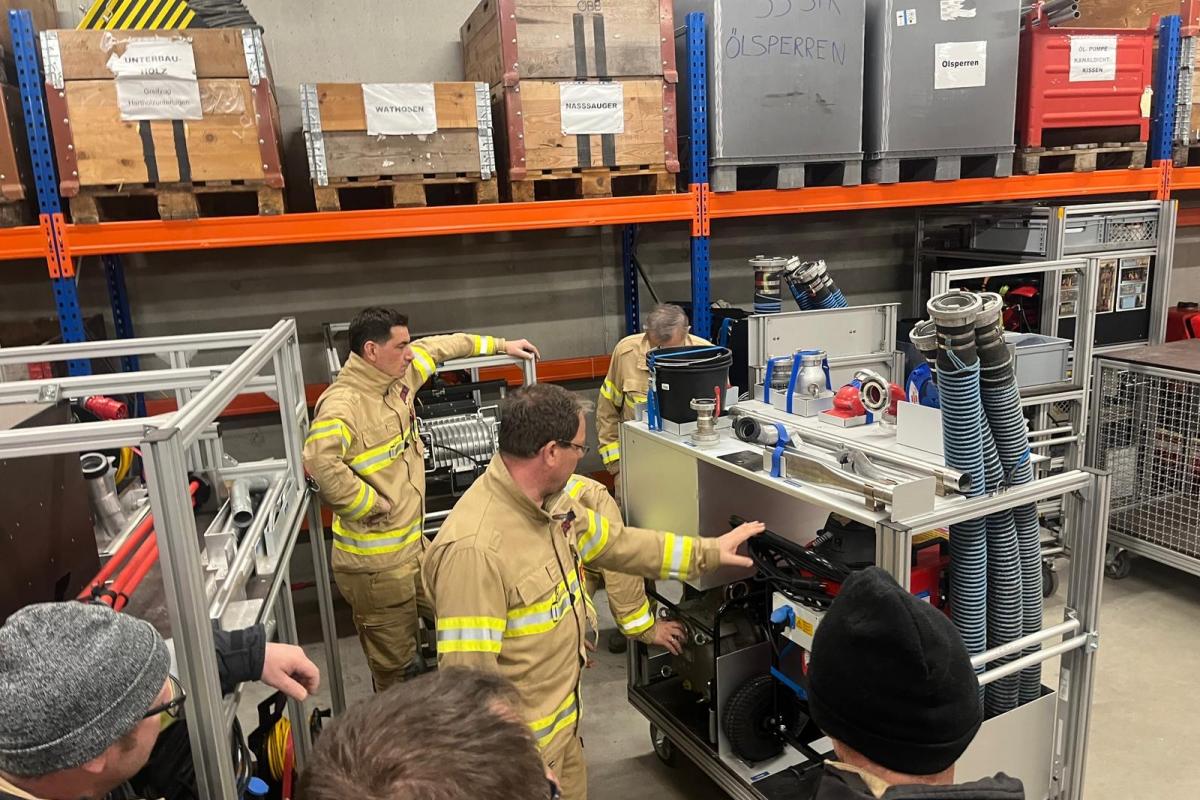 Bei Station 1 wurden die unterschiedlichen Gerätschaften für den Hochwassereinsatz besprochen und in Betrieb genommen. So wurden Tauchpumpen, Nasssauger sowie Schmutzwasserpumpen erklärt und praktisch vorgeführt.