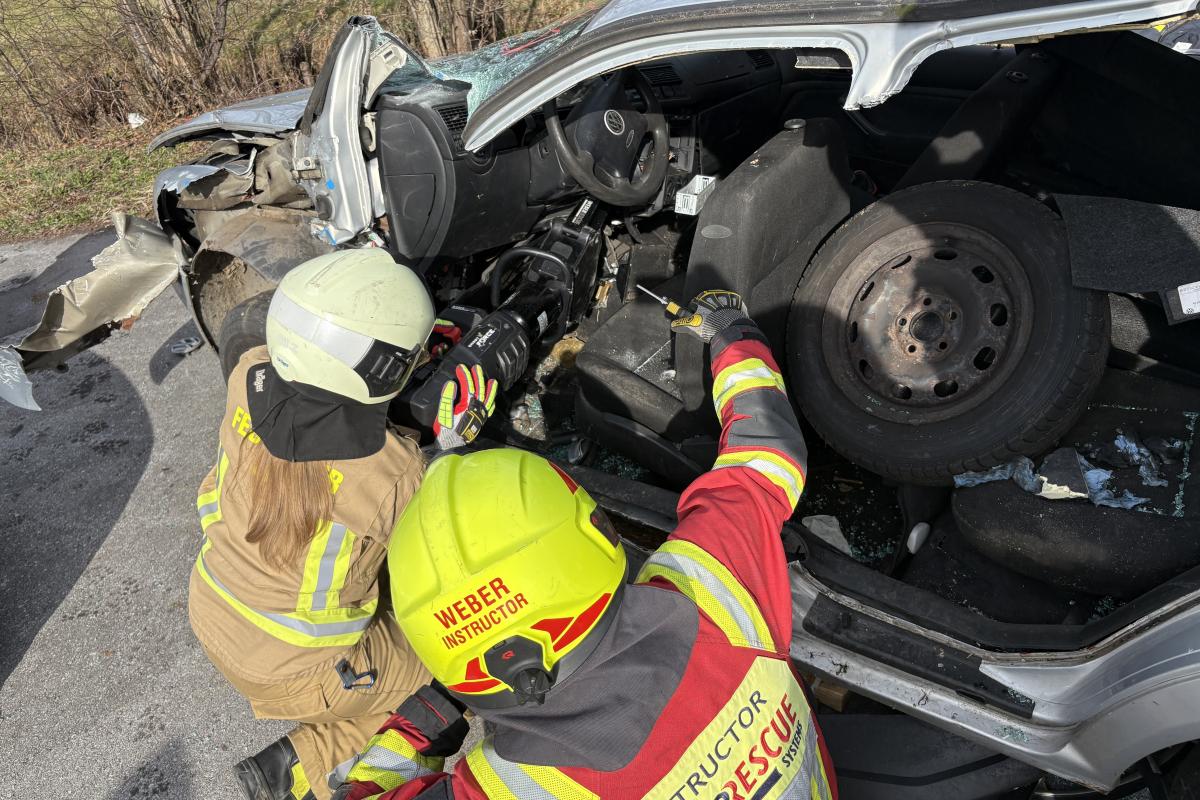 Die Ausbildung wurde von zwei Fachtrainern der Firma Weber Rescue Systems durchgeführt und widmete sich intensiv dem Einsatz hydraulischer Rettungsgeräte sowie verschiedenen Rettungsarten.