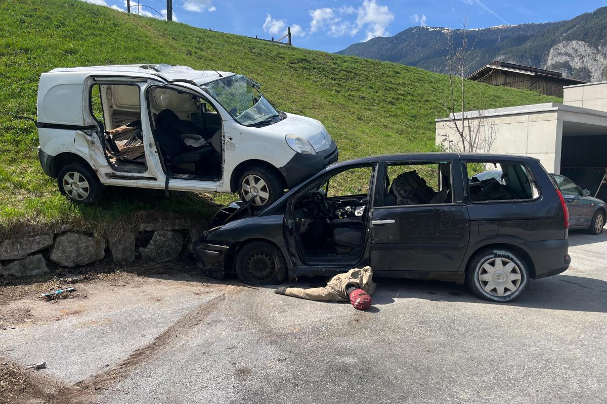 Bei dieser Station handelte es sich um einen Verkehrsunfall mit zwei beteiligten Fahrzeugen. Ein Fahrzeug drohte weiter abzustürzen und musste gesichert werden. Unter dem darunterliegenden Fahrzeug war eine Person eingeklemmt, die mithilfe von Hebekissen befreit werden musste.
