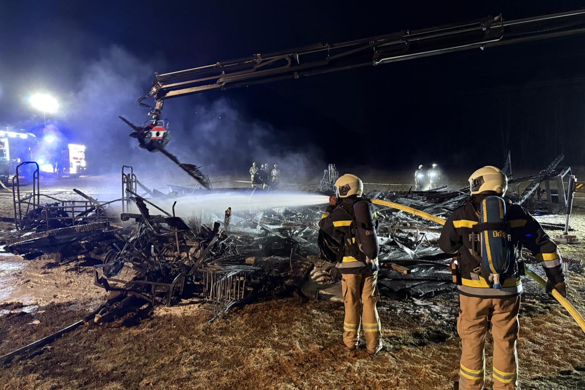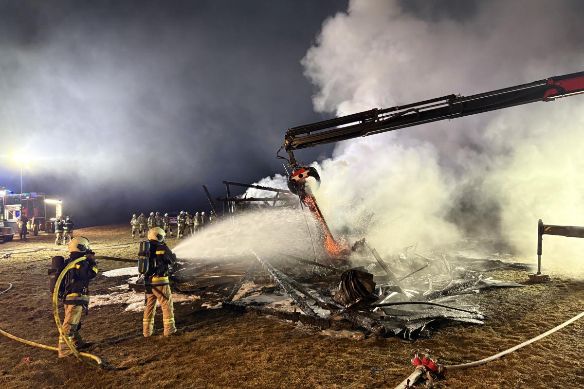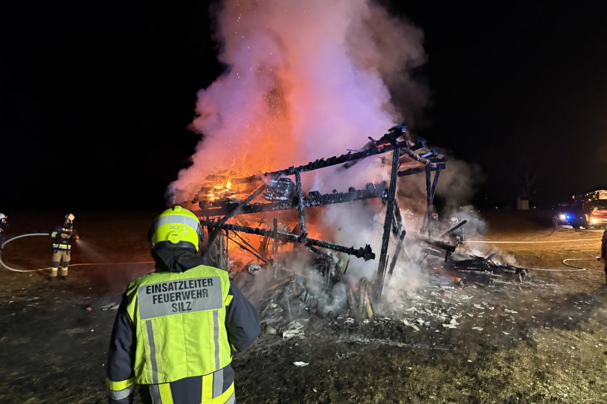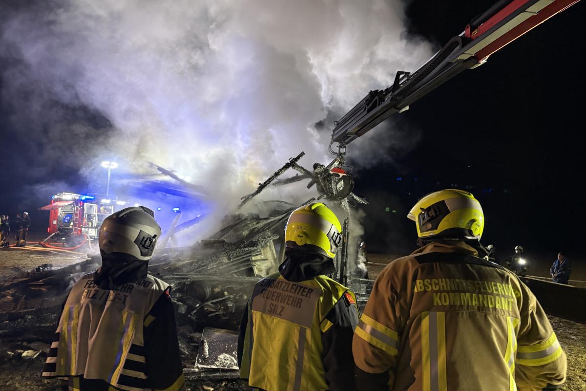 Unter Einsatz mehrerer Atemschutztrupps wurde das Feuer schließlich unter Kontrolle gebracht und gelöscht. Zusätzlich wurde ein Kranfahrzeug eines Silzer Unternehmens angefordert, um den abgebrannten Stadl zu zerlegen und verbliebene Glutnester freizulegen.
