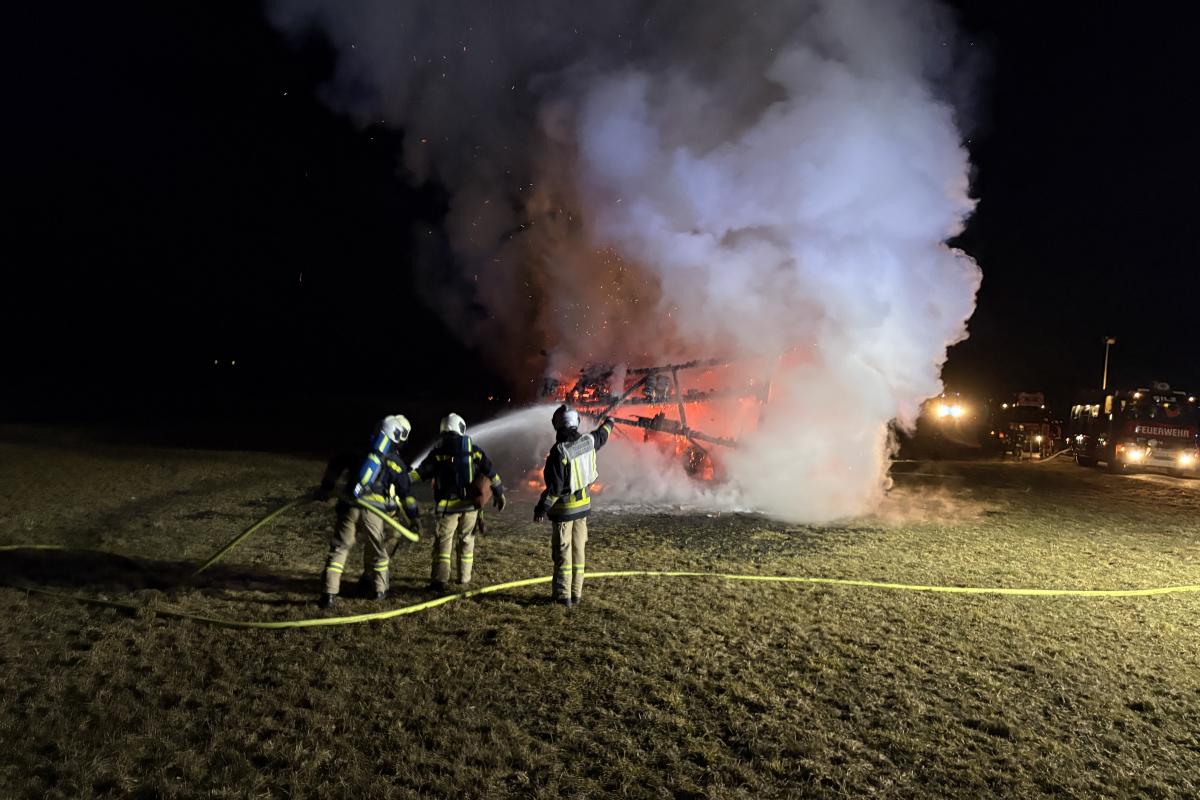 Nach rund 3,5 Stunden konnte die Feuerwehr Silz wieder ins Gerätehaus einrücken. Brandursache ist derzeit noch unklar und wird von der Polizei ermittelt.