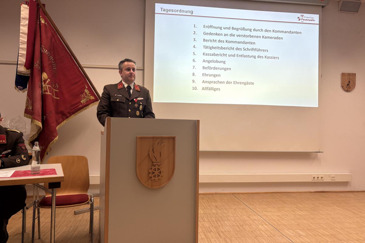 Zu Beginn der Versammlung konnte unser Kommandant HBI Michael Wagner zahlreiche Ehrengäste begrüßen: