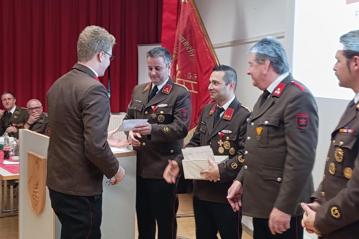 HV Roman Strolz berichtete als Schriftführer von 146 Übungen sowie 52 Kursteilnahmen an der Landesfeuerwehrschule. Kassier HV Alexander Heinz präsentierte den Kassabericht und wurde im Anschluss von den Mitgliedern einstimmig entlastet.