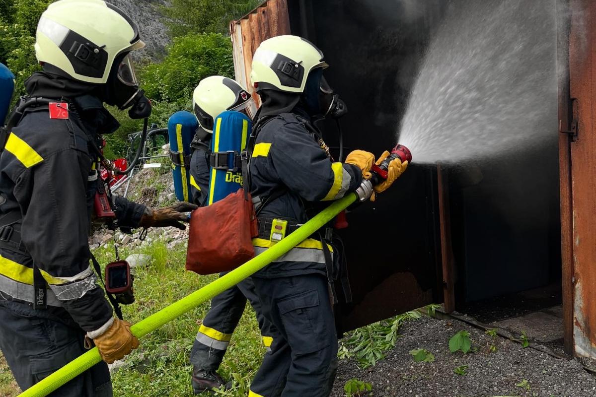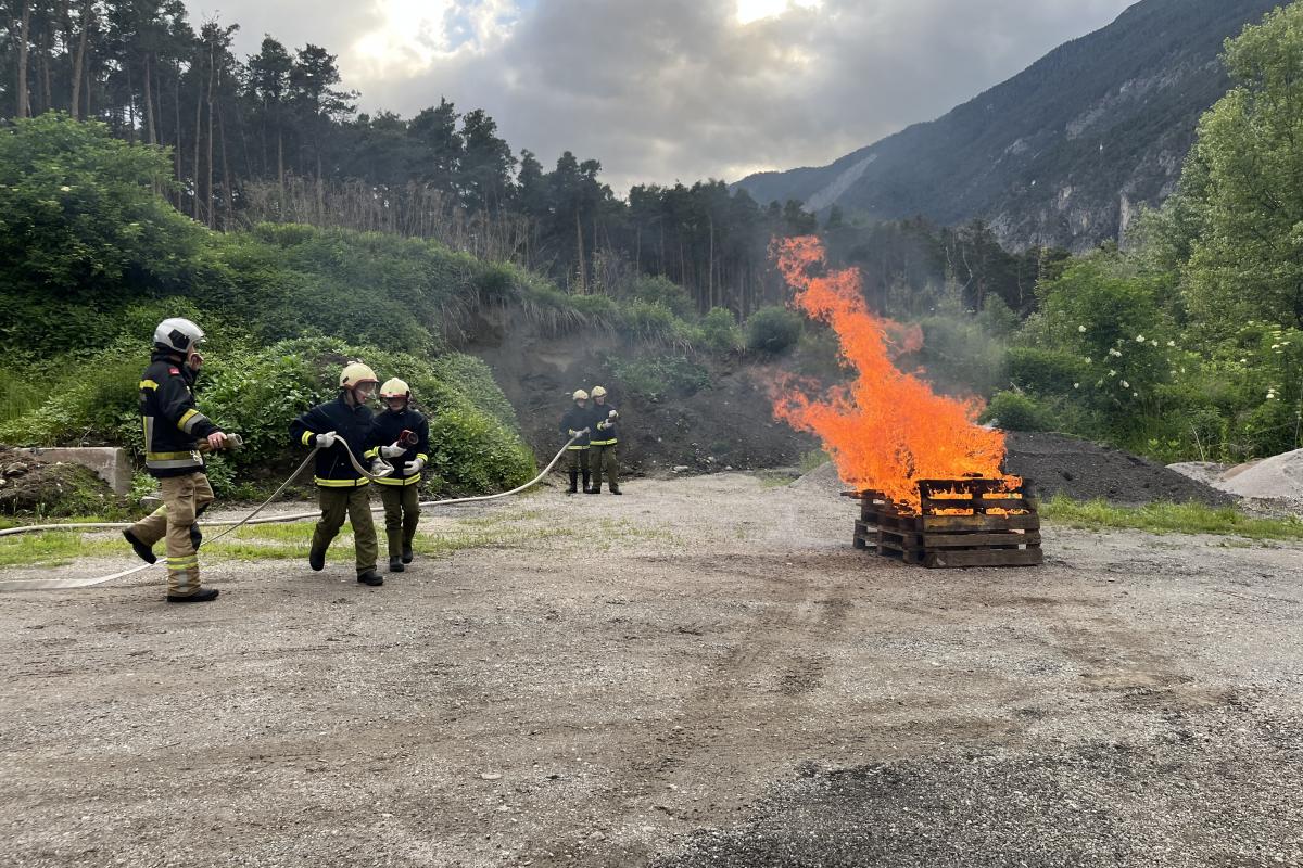 Die Übungsannahme der Ausbildungsgruppe umfasste einen Kleinbrand im Freien sowie einen Zimmerbrand. Die jüngeren Kameradinnen und Kameraden übernahmen dabei die Brandbekämpfung im Freien mittels C-Rohren. Die ältere Gruppe bekämpfte den Zimmerbrand mithilfe des Standard-Regelangriffs unter Atemschutz.