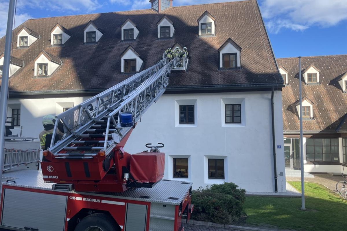 Durch die automatische Auslösung der Brandmeldeanlage wurde die Feuerwehr Stams zeitgleich mit der Drehleiter der Feuerwehr Silz alarmiert. Beim Eintreffen der Feuerwehr Stams konnte eine deutliche Rauchentwicklung wahrgenommen werden. Kurz darauf traf auch die Drehleiter der Feuerwehr Silz am Übungsobjekt ein.