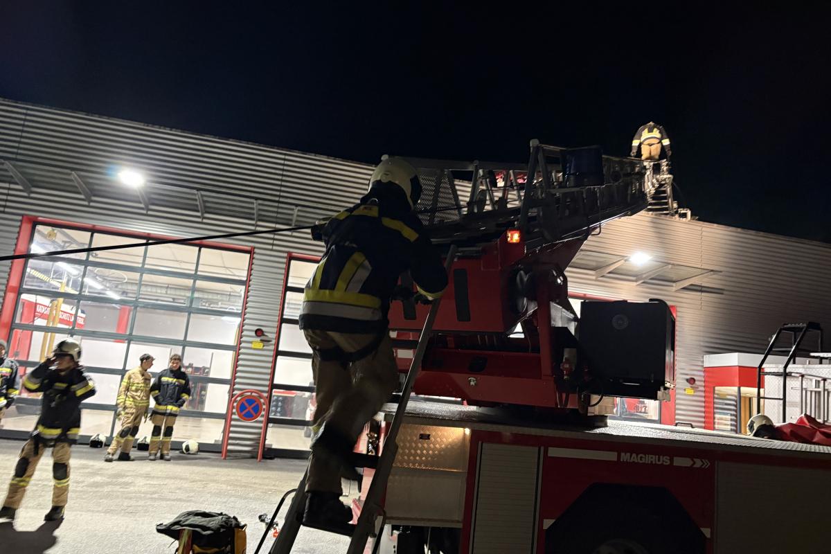 An dieser Station wurde das Auf- und Absteigen über die Drehleiter beübt. Dies ist besonders wichtig, um im Einsatzfall bei Bedarf einen Atemschutztrupp austauschen zu können, ohne die Drehleiter einfahren zu müssen. Zudem kann es im Notfall erforderlich sein, mehrere Personen über die Drehleiter zu retten.