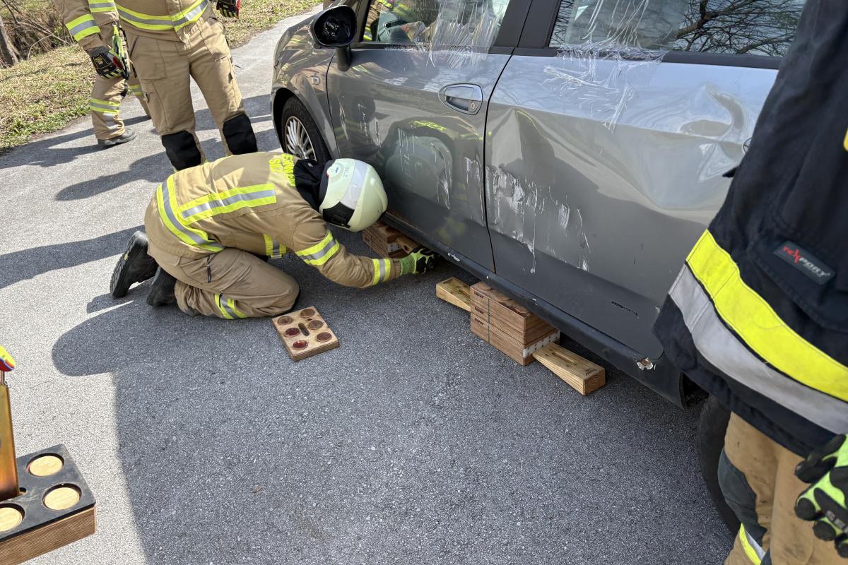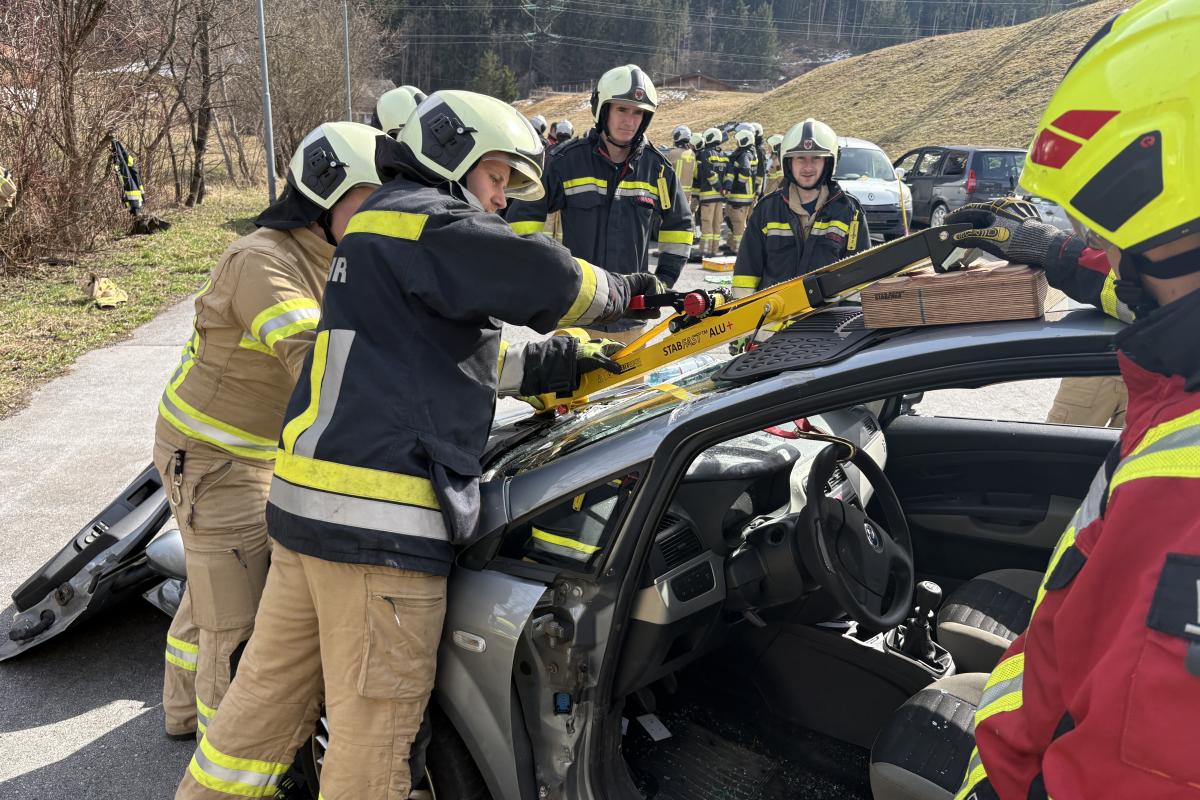 Am Vormittag standen rund drei Stunden theoretische Ausbildung auf dem Programm. Dabei wurden grundlegende Einsatztaktiken bei Verkehrsunfällen behandelt – von der Erkundung der Lage über die Erstmaßnahmen bis hin zur patientenorientierten Rettung. Ein besonderer Schwerpunkt lag auf dem Arbeiten mit Rettungskarten sowie auf den Herausforderungen durch alternative Antriebssysteme wie Elektro- und Hybridfahrzeuge.