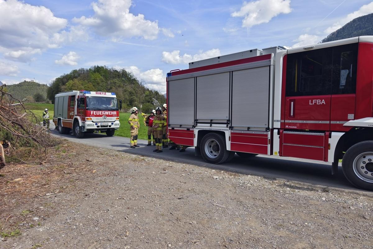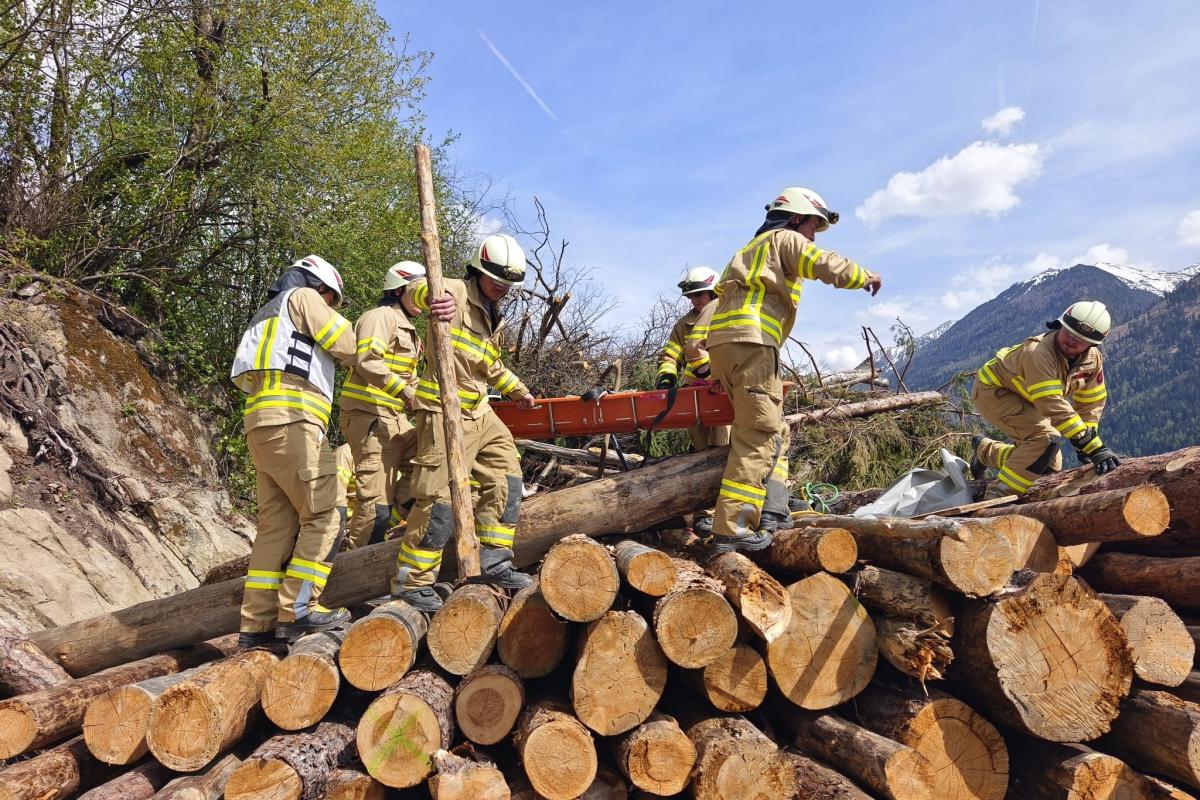 Ein Paragleiter war in einem Baum hängen geblieben. Ein Holzarbeiter, der helfen wollte, wurde dabei selbst verletzt und unter einem Holzhaufen eingeklemmt. Mithilfe von Hebekissen musste der Holzhaufen angehoben werden, um den Arbeiter zu befreien. Parallel dazu wurde der Paragleiter von der zweiten Feuerwehr aus dem Baum gerettet.